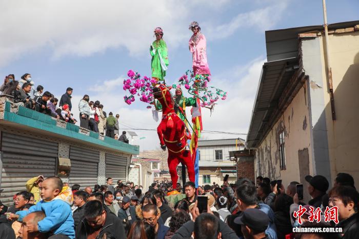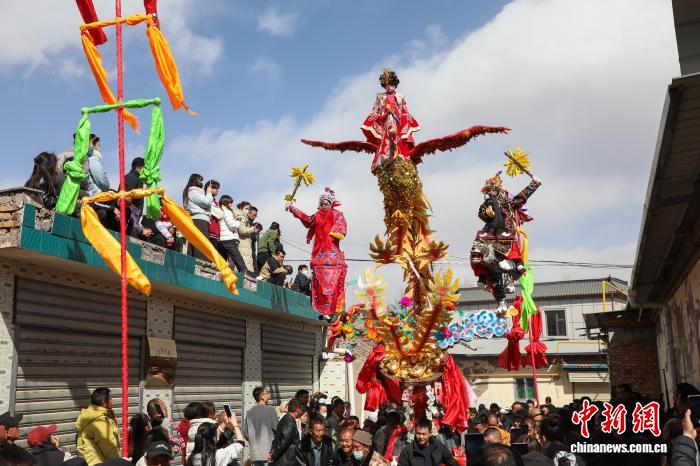 (新春走基层)青海湟中:“空中杂技”千户营高台精彩上演